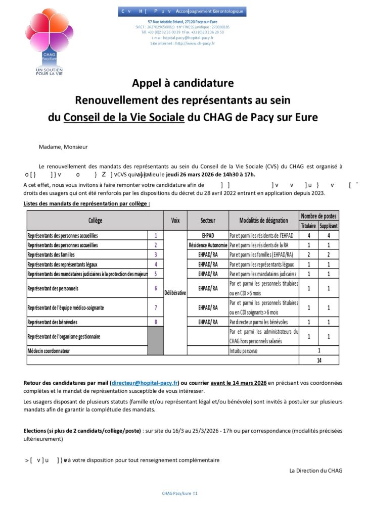 Renouvellement des Représentants du Conseil de la Vie Sociale 2026